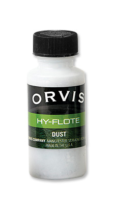 Hy-Flote Powder no solo mantiene las moscas altas y secas, sino que tiene un atractor de brillo mezclado y crea un efecto de burbuja de aire realista.