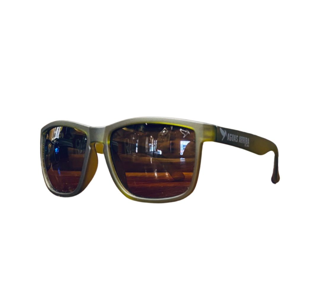 Los nuevos lentes Aguas Arriba son polarizados, y contamos con dos colores, uno azul con un polarizado mas fuerte para días fuertes de sol. Los lentes verdes cuentan con un polarizado ambar o marron claro el cual nos sirve mucho para ultima hora y para usar en el día a día.