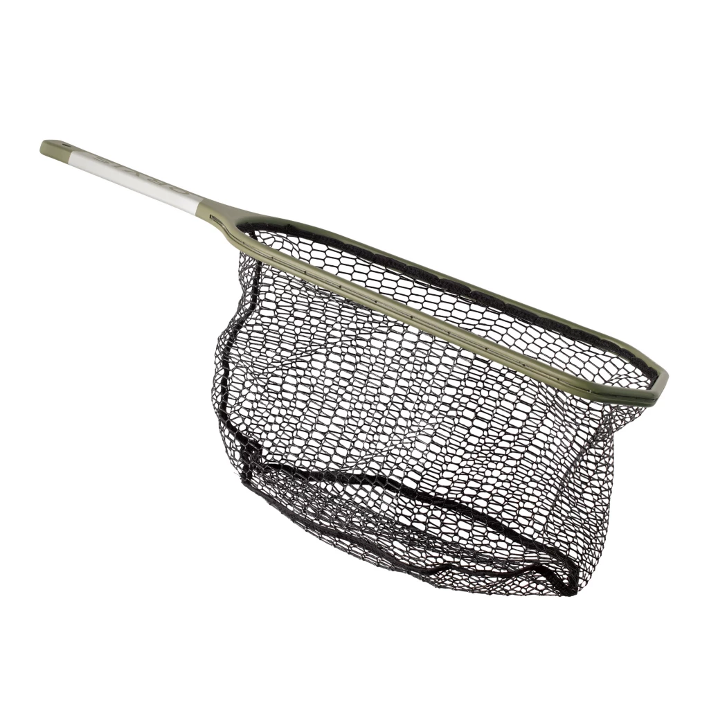 Como dice el adagio de los pescadores desde hace mucho tiempo, el objetivo es mejor al obtener peces mas grandes, exactamente por eso hemos aumentado sustancialmente el tamaño del aro en nuestra serie de copo de boca ancha hasta la zona del yugo. No solo es mucho más fácil atrapar un pez con un aro tan grande, sino que también es mucho más seguro quitar la mosca de un pez con amplio espacio para trabajar. Los peces también lo aprecian. Hecho de un material compuesto único para una mayor durabilidad, liviano, que no envejecerá tan fácilmente como los de madera, con una red más profunda, sin nudos y resistente a los anzuelos. Mango más corto y compacto de 23 cm diseñado para la comodidad del pescador de vadeo.
