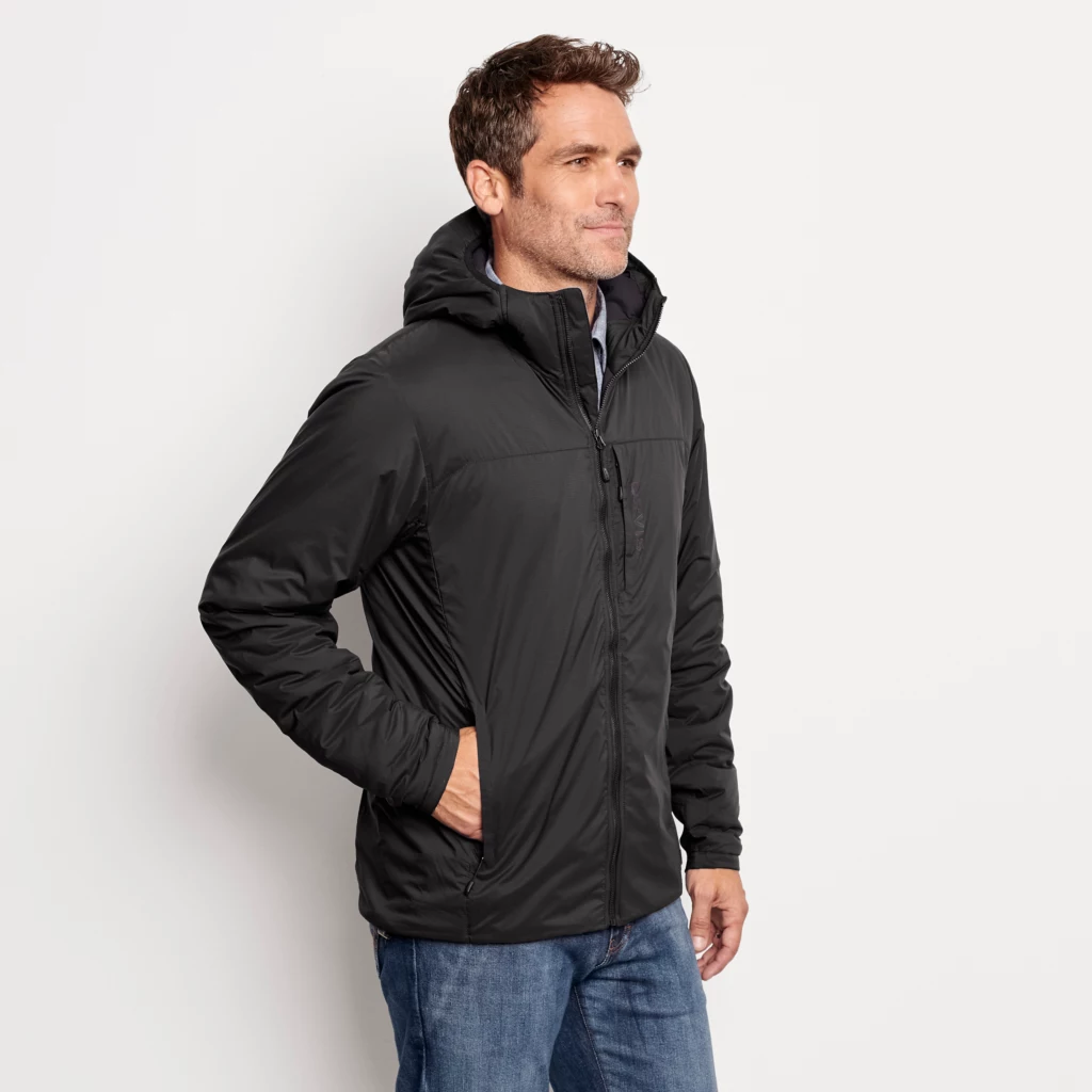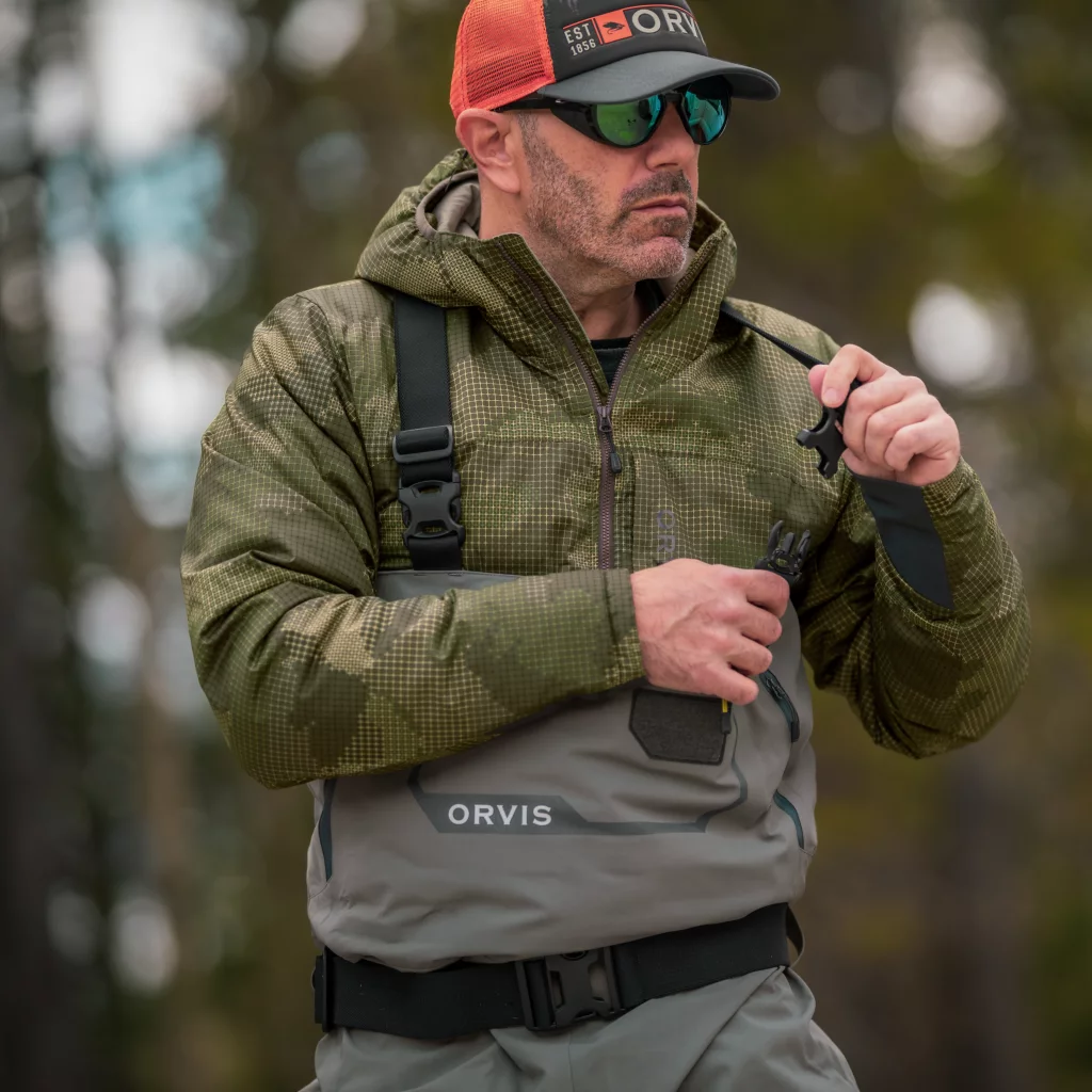 La ropa de pesca Orvis PRO es la ropa tecnológicamente más avanzada que jamás hayamos construido. Utilizando una combinación de fabricación técnica y diseño específico para la acción, la ropa Orvis PRO se enfrenta a los elementos y brinda la protección necesaria incluso en los entornos más hostiles. La campera con capucha PRO Insulated utiliza aislamiento corporal para proporcionar un control óptimo de la temperatura en una amplia gama de niveles de actividad y entornos. El aislamiento PrimaLoft® Gold Active de 80 g (45 % de contenido reciclado) protege el núcleo del cuerpo, la cabeza y los brazos con una calidez ingrávida y altamente compacta, ideal para actividades activas. Polartec® Alpha® (80 g), (55 % de contenido reciclado), diseñado originalmente para equipos de operaciones especiales, regula el calor corporal y la humedad a través de los paneles laterales, lo que permite usar la campera cómodamente en una amplia gama de temperaturas y actividades. El exterior y el forro son una cubierta de nailon ripstop elástico mecánico 20D con un revestimiento único para mejorar la resistencia al viento y a la intemperie. Panel de puños tejido elástico resistente a la abrasión y bolsillos para calentar las manos con cierre y forro polar. Bolsillo en el pecho con cierre y bolsillo interno de seguridad con cierre que también funciona como bolsa para cosas. Capucha estilo buceo de perfil bajo para facilitar la colocación de capas y una mejor visibilidad. Cierres YKK® de alta calidad y revestimiento DWR (Durable Water Repellent). El ajuste activo es ideal para usar en capas.